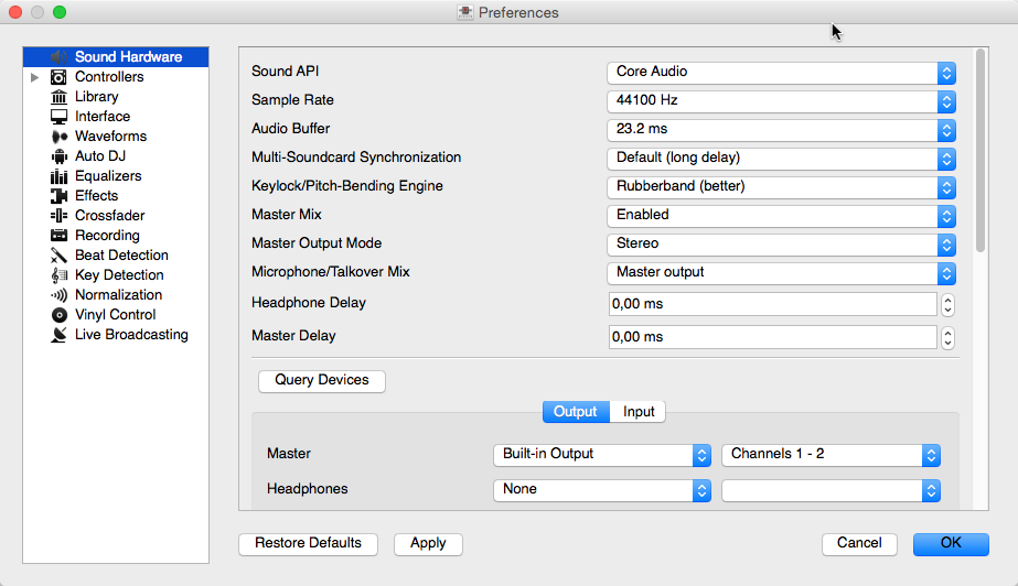 Mixxx Sound Hardware Preferences